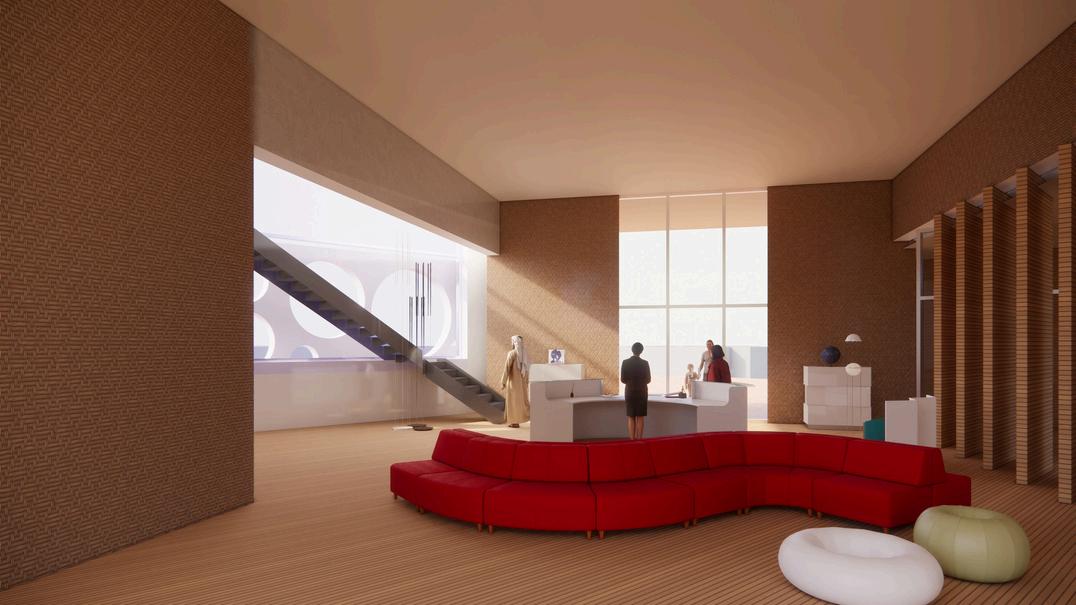 Wood louvers and glass surfaces establish a natural atmosphere with filtered light and visual connections to the outdoors Despite urban constraints, the design prioritizes green space through a minimal footprint The layout transitions from vibrant community areas to quiet private zones, supporting the center's community-building mission.