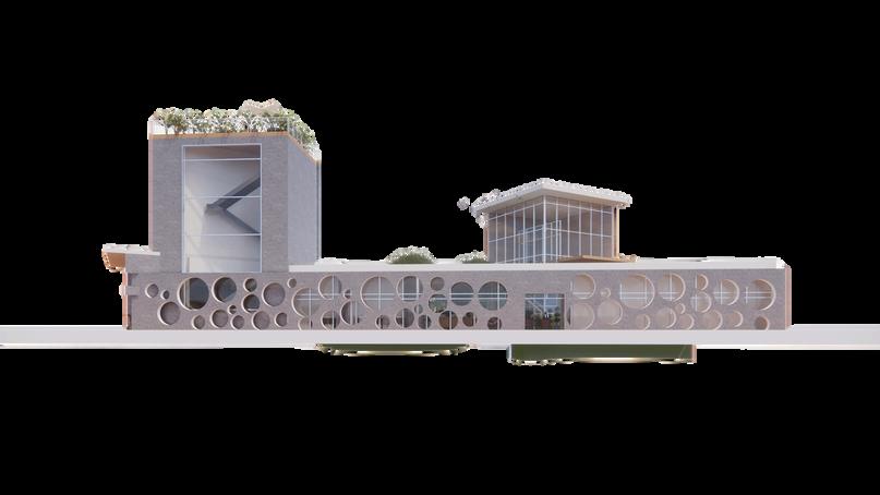 The design uses glass and wooden louvers, maximizing natural light and framing landscape views and circular forms in a curving arrangement that responds to the coastal setting This immersive experience enhances education through direct engagement with nature, producing graduates with a comprehensive understanding of health beyond technical knowledge
