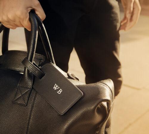 The perfect gift for the stylish jetsetter, this modern luggage tag is adorned in full grain American leather finished with handmilled silvertone hardware.