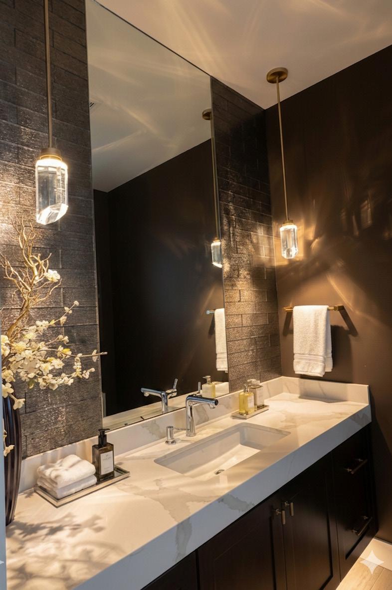 POWDER ROOM AFTER CABINET, COUNTERTOP ,LIGHTS & MIRROR INSTALL COMPLETE