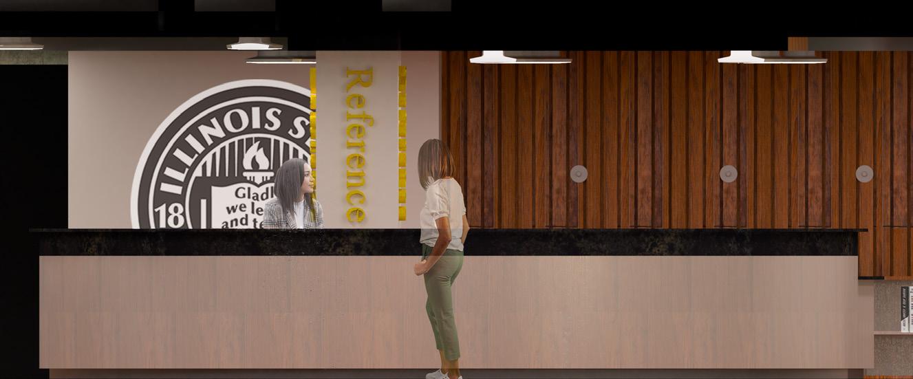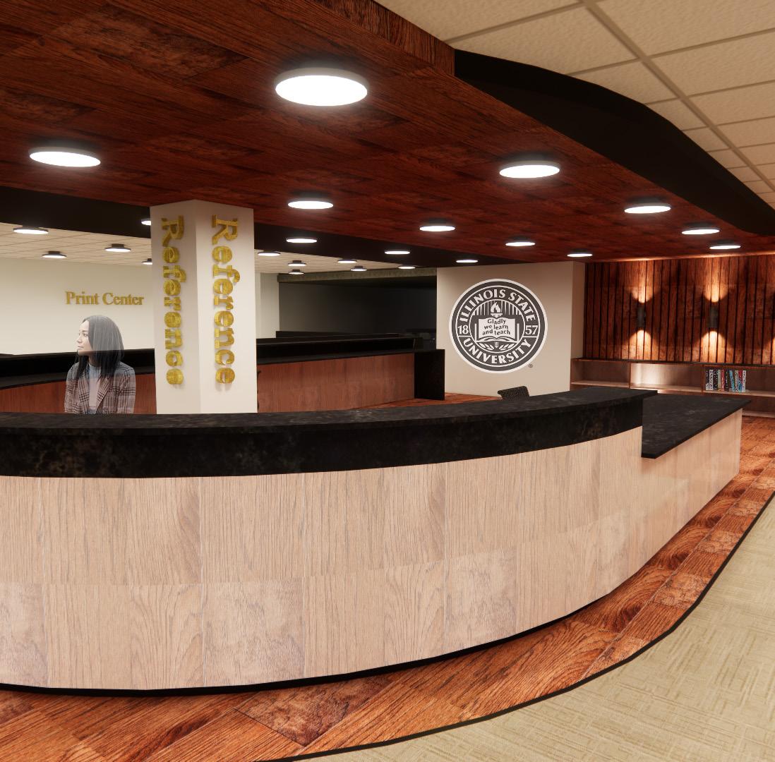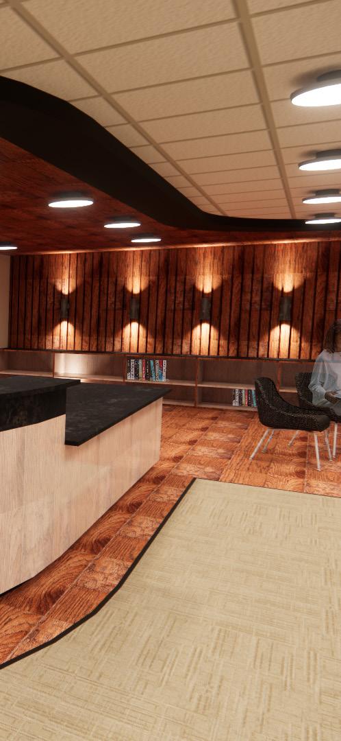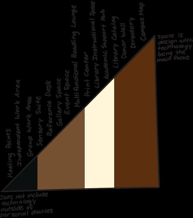 The main intent for this design concept is to create a campus library environment that integrates advanced technology. The goal is to provide a variety of technological platforms which can be used as resources for librarians, students, and the community. The design team will implement three different strategies to ensure the benefits of the resources which includes easy navigation, universal position for all users, and efficiency. The space will include wall-mounted screens to allow for further interaction. A vintage and historic atmosphere will be presented using dark woods, dim lighting, vintage accents, and a neutral color pallet which will contrast against the advanced, innovative technology. This will make the resources further stand out for their users which allows for easy way finding.