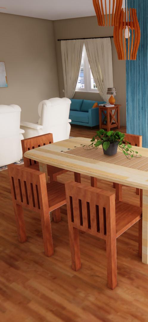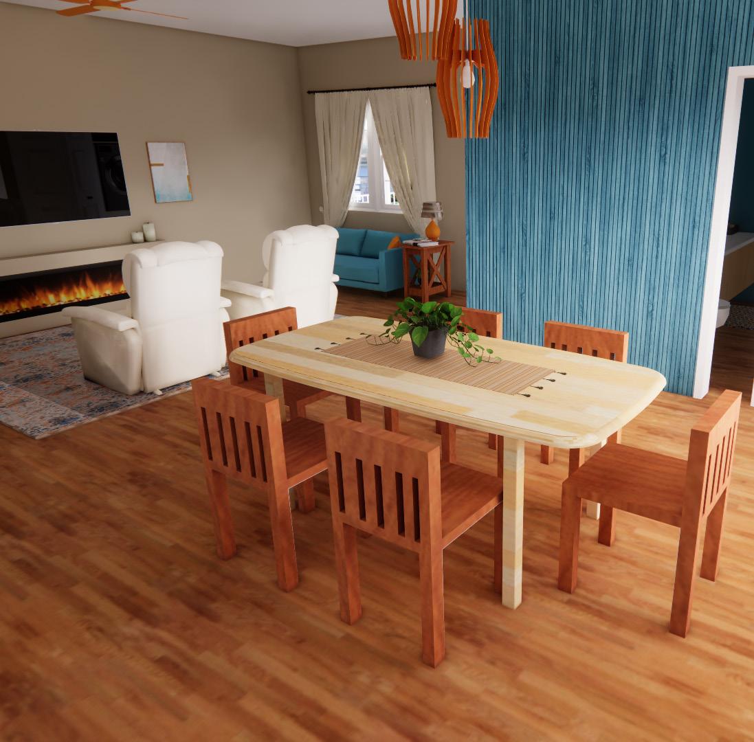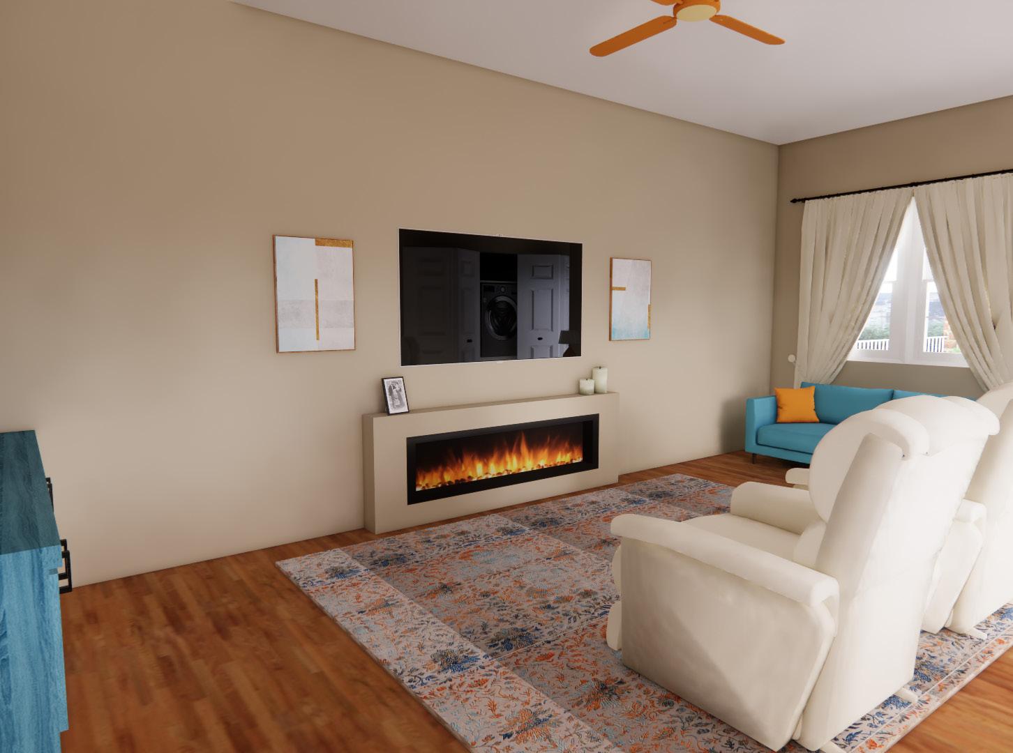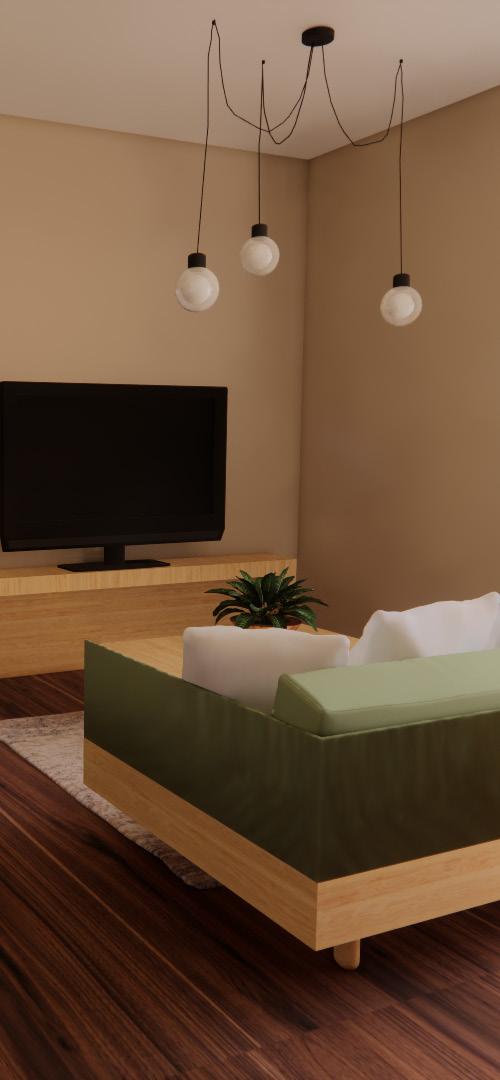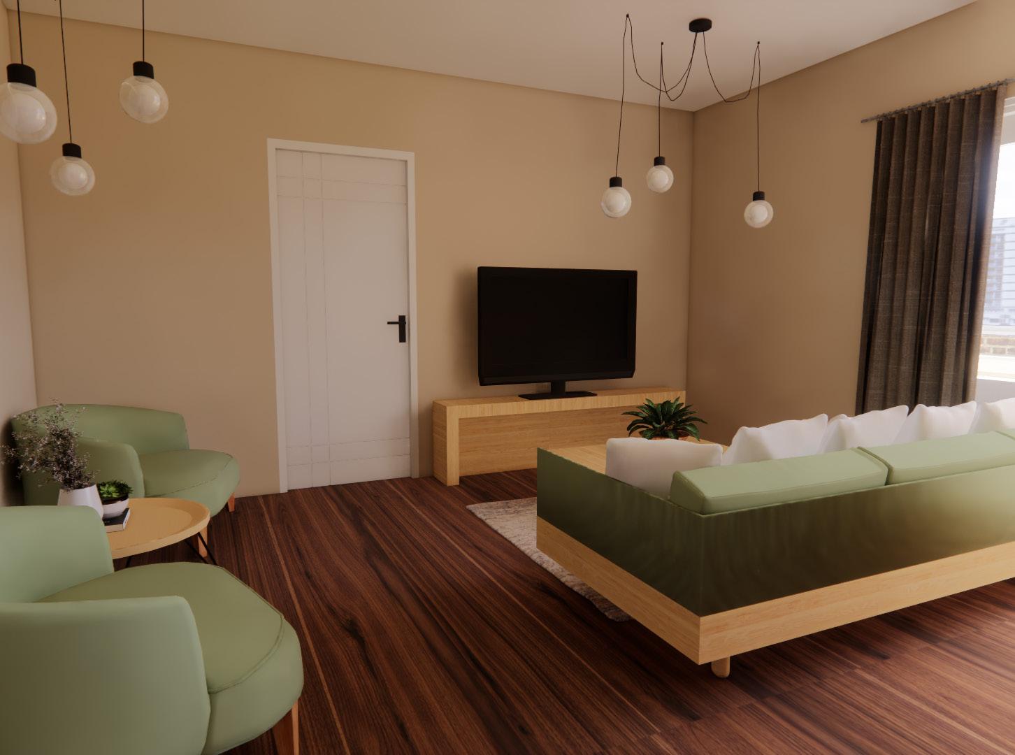 The living room was designed using colors found in nature such as browns and greens which are very popular in the Brazilian culture. The living room contains seating for the family of four along with space and additional seating for guests. This incorporates relationship building which is also very popular.