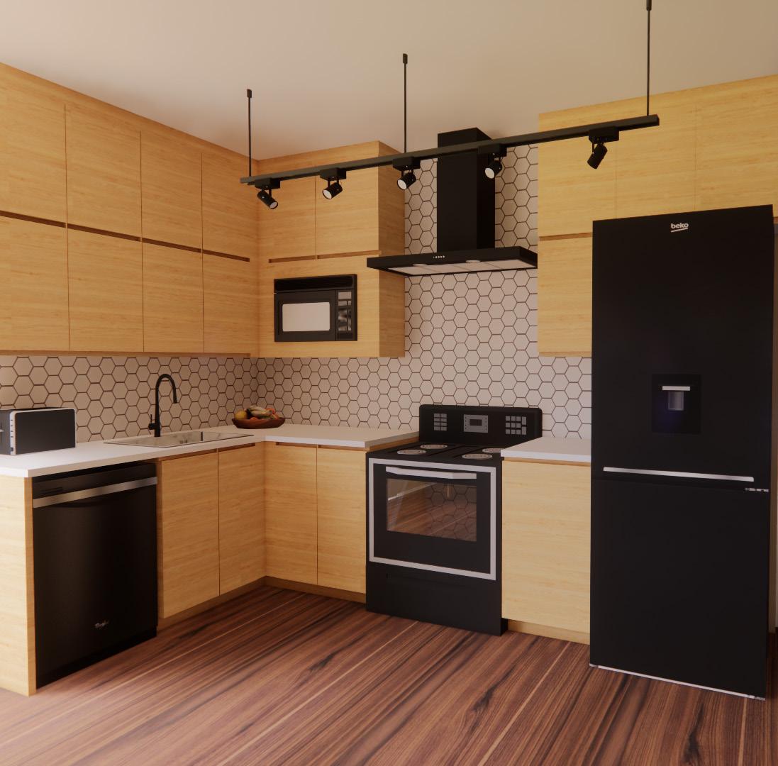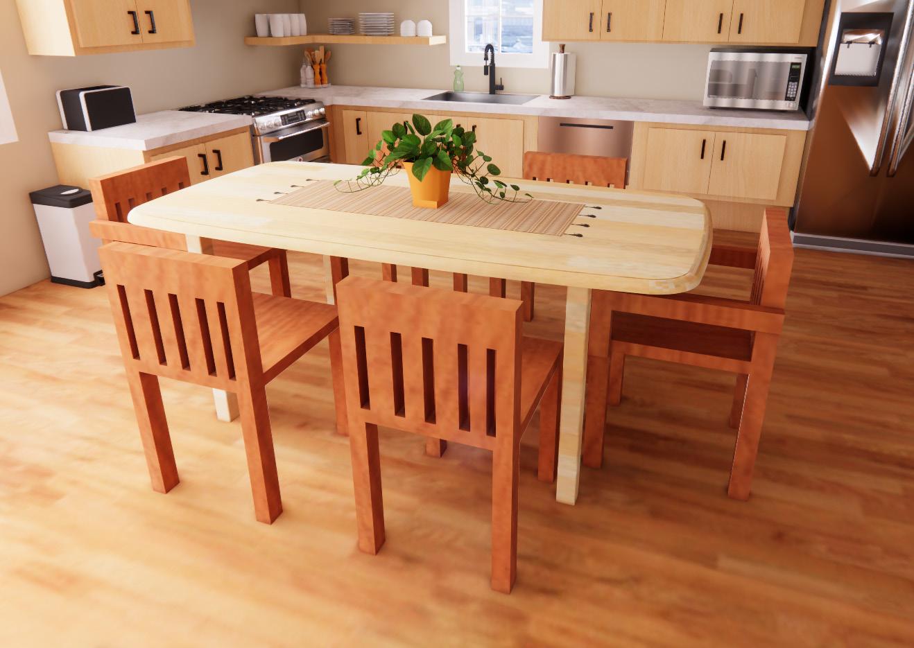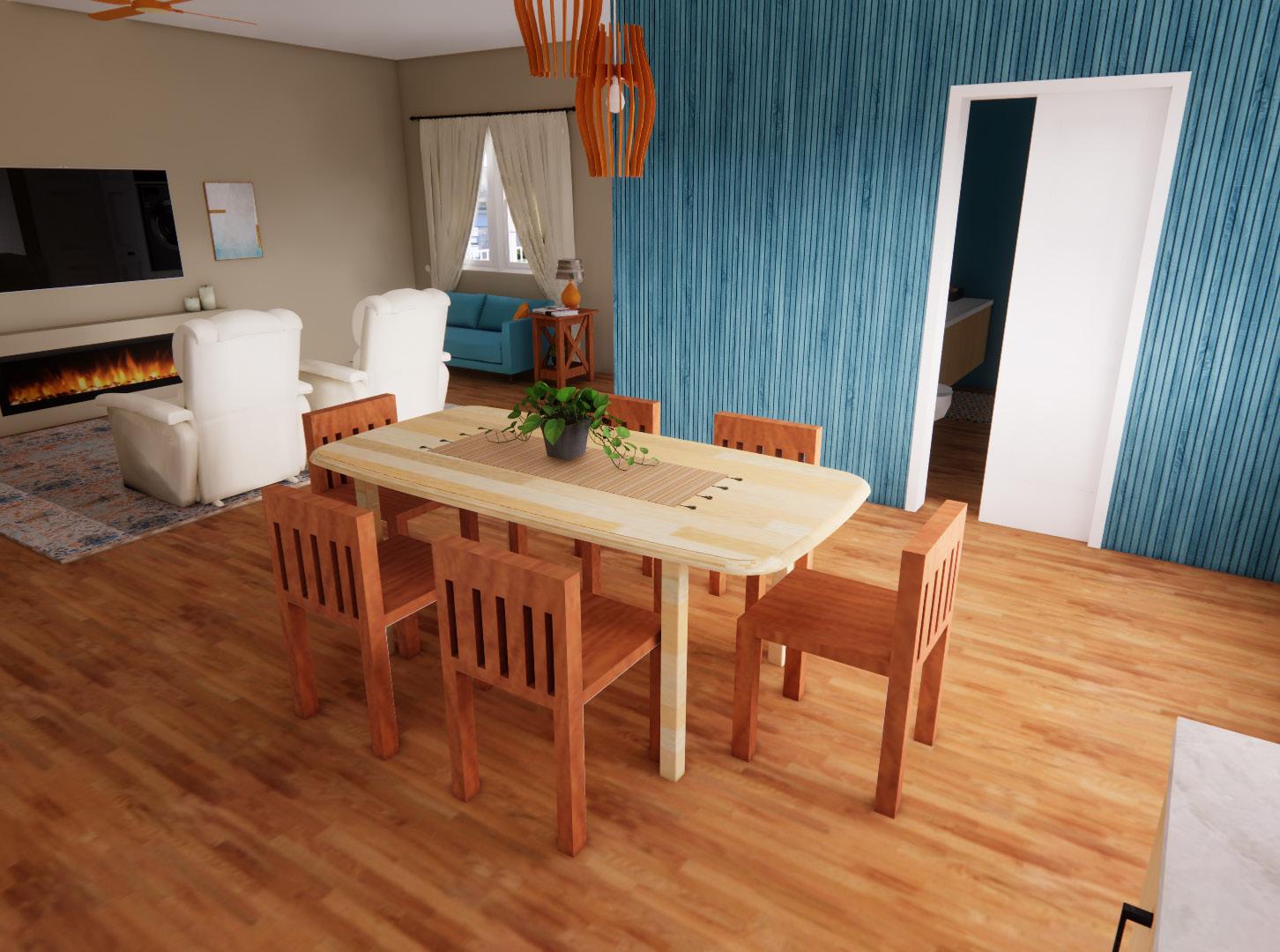 The floor plan consists of entering through the living room, a kitchen, dining room, and laundry room connected by an open floor plan, a jack and jill bathroom that can be accessed form the dining room and the bedroom, and a balcony. The design was created to incorporate ADA guidelines and universal and inclusive design so anyone regardless of their abilities can use the space.