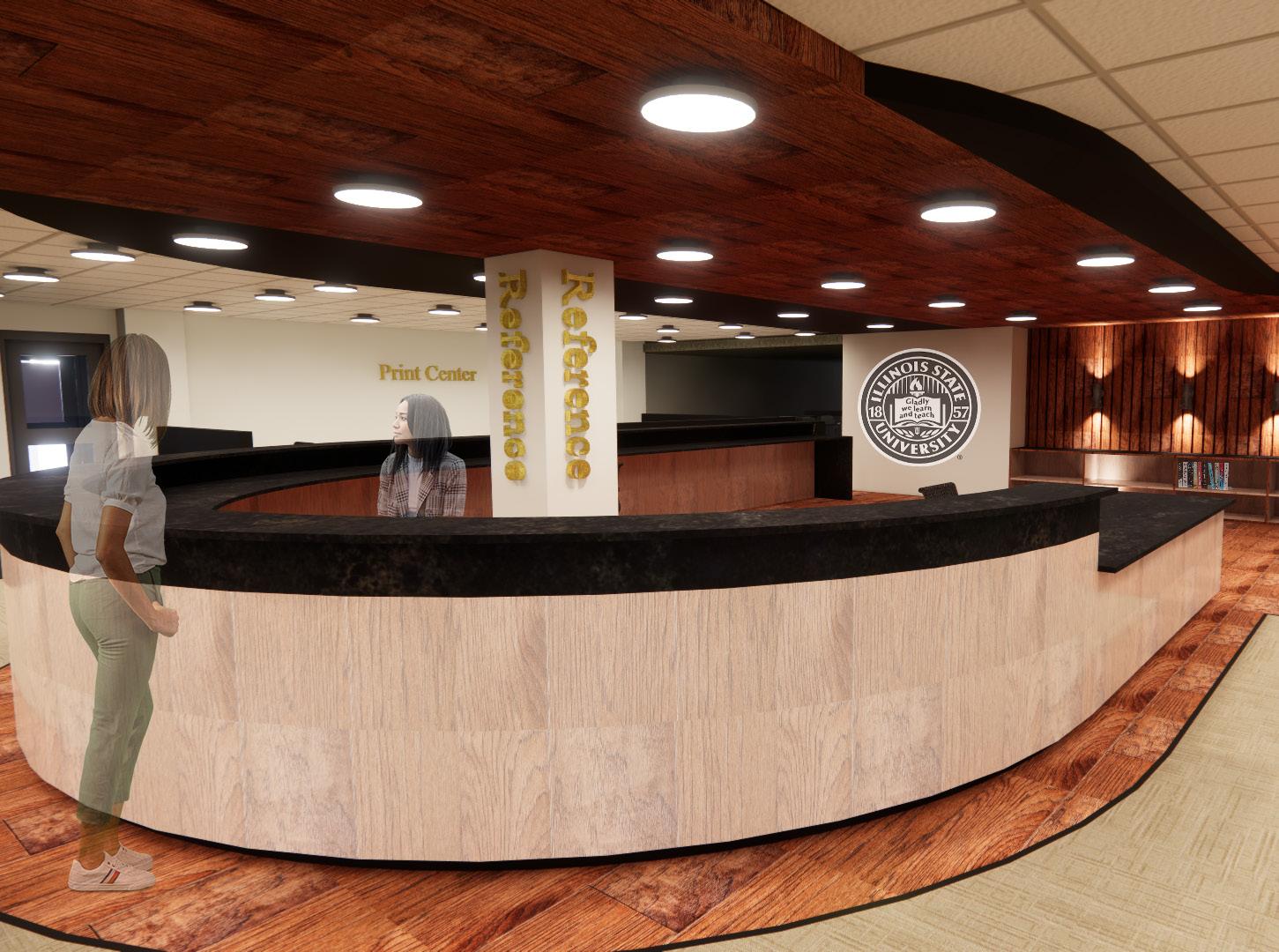 The reference desk contains a portion that follows ADA guidelines to ensure that all members of the library are included.