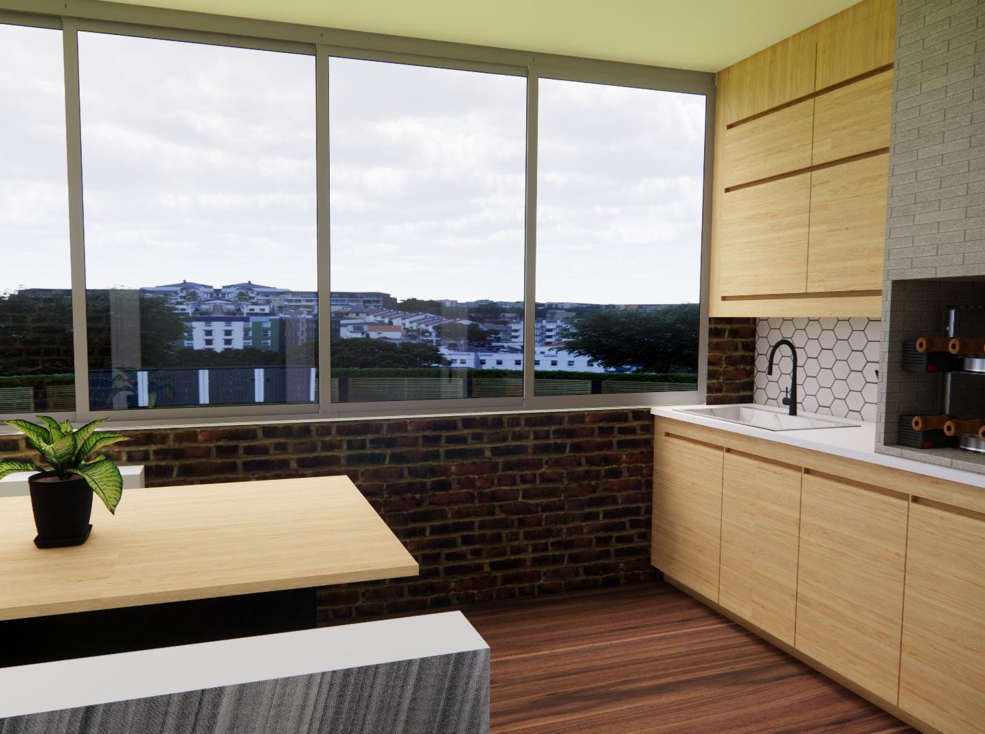 The balcony contains a churrascaria, or a Brazilian styled grill to cook meat. The balcony is also fully enclosed for when there is poor weather but is fully surrounded by windows that are able to be opened when using the churrascaria to prevent the build up of smoke or to open up the apartment to benefit from a natural breeze.