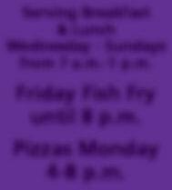 Friday,Oct17,20257:00PM IthacaatNewLisbon ServingBreakfast &Lunch Wednesday-Sundays from7a.m.-1p.m. FridayFishFry until8p.m. PizzasMonday 4-8p.m.