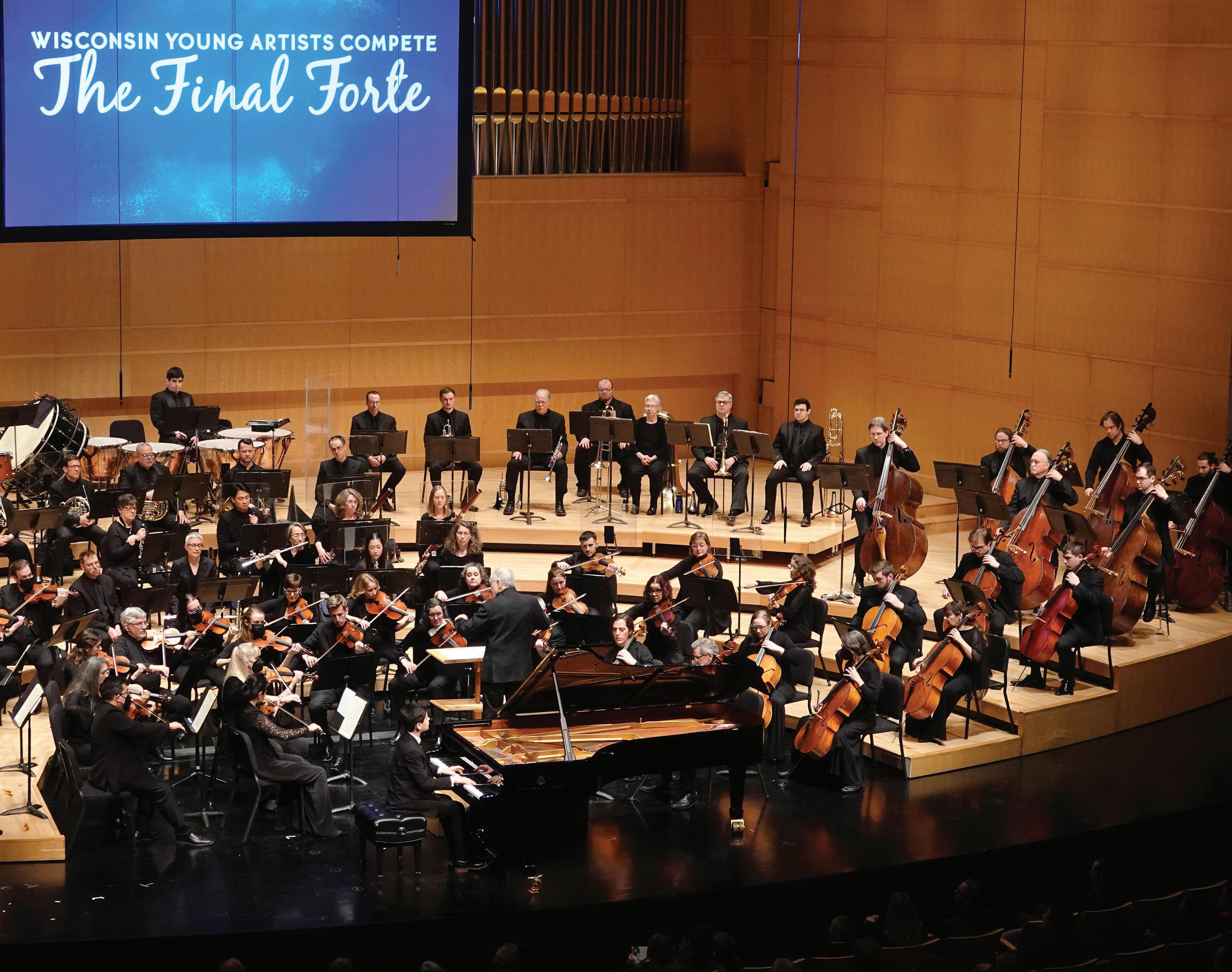 The Bolz Young Artist Competition is a highly regarded statewide competition open to Wisconsin students in grades 9–12 who play strings, winds, brass, percussion, or piano. Two intensive rounds of auditions culminate in the third round, in which the top four finalists perform with the MSO in Overture Hall. The third round of the competition is broadcast live on PBS Wisconsin and Wisconsin Public Radio as “Wisconsin Young Artists Compete: The Final Forte.” All four finalists receive scholarships. The second-place winner receives the Steenbock Youth Music Award. The first-place winner of the competition receives the Marian Bolz Prize for Distinguished Musical Achievement and performs with the MSO for an audie nce of their peers during the Spring Young People’s Concert.