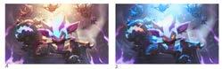 Una vez seleccionados los bocetos definitivos, el equipo colaboró para definir la paleta de colores, optando por tonos cálidos que contrastaban con el cabello azul de Tristana. El proceso de renderizado se llevó a cabo en capas, lo que permitió a la ilustradora realizar ajustes precisos sin comprometer el resto de la imagen.