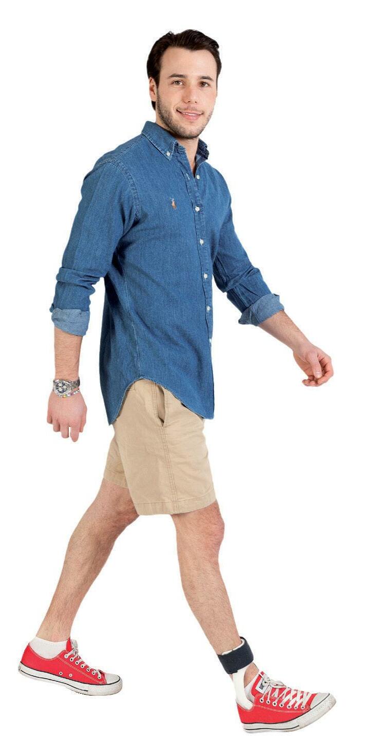 - Det gjorde Flexbrace® berømt på to minut ter og har medført mange flere succeshisto rier. Jeg har for eksempel en kunde, som er portør. Han går 20 km. om dagen på sit job med Flexbrace® på begge fødder. Uden dem ville han være yderst gangbesværet og der for heller ikke kunne arbejde, fortæller Lars Falkenman om den forskel, hans opfindelse gør for kunderne.