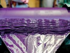 La pâte est ensuite broyée à vitesse lente pour ne pas échauffer la matière, sur des broyeurs en pierre de porphyre pour préserver la pureté de la couleur. L’opération est répétée en moyenne six fois, opération longue mais indispensable au bon “mouillage” du pigment.