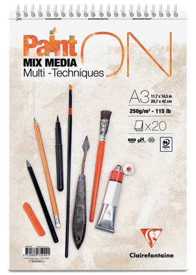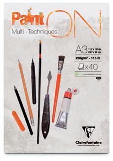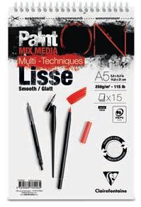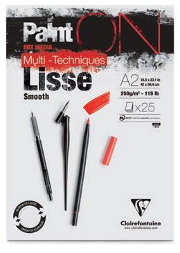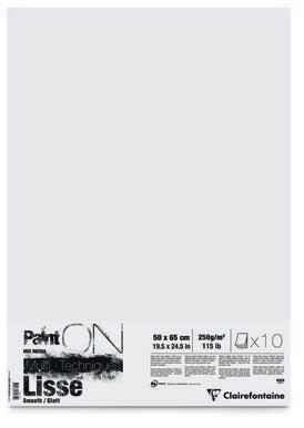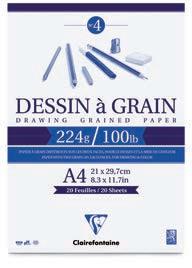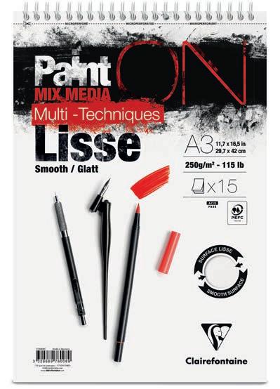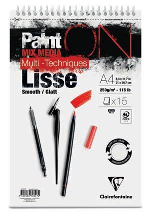 Le papier idéal pour les travaux précis et fins : un support lisse mais non glissant, avec un toucher d’authentique papier d’aquarelle. Les possibilités techniques du satiné, sans les défauts d’usage du satiné à chaud. L’avantage du demi-satin Clairefontaine est sa surface lisse qui permet une reprise de chaque coup de pinceau.