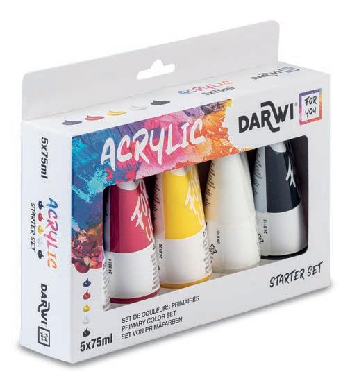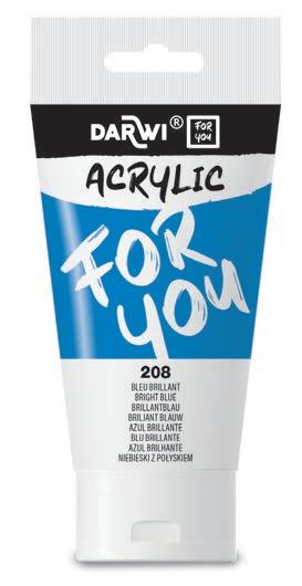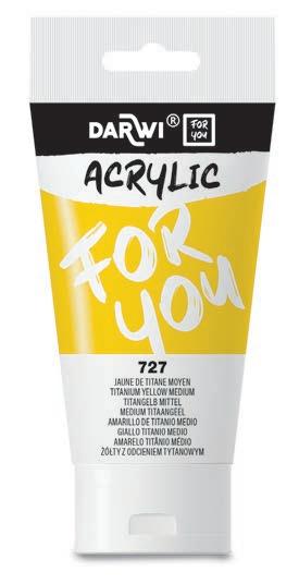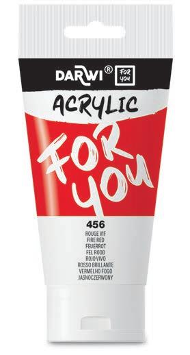 Fabriquée en Belgique • Forte concentration pigmentaire • Texture onctueuse • Couleurs miscibles • Nettoyage facile. 40 couleurs éclatantes et très couvrantes en tube de 75 ml. Texture onctueuse et effet satiné, pour une application fluide et des résultats exceptionnels ! L’acrylique. Darwi For You c’est le choix parfait, que vous soyez débutant ou confirmé. Veuillez compléter la réf. par le n° de couleur de votre choix. Prix par tube.