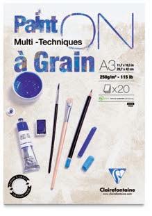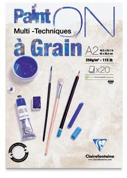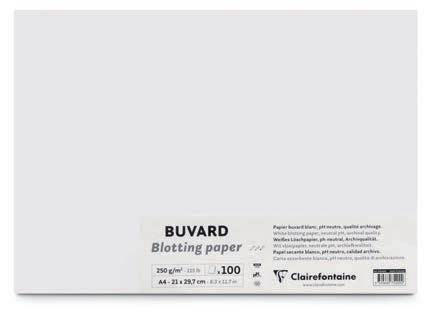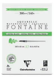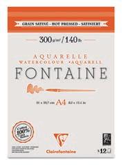 révéleront tout son potentiel. Sa surface au grain fin est quasi lisse au verso. Avec ses fibres de coton creuses, le papier Fontaine assure une belle capacité d’absorption, une planéité du papier mouillé, et la possibilité de repentir, particulièrement appréciés des aquarellistes.