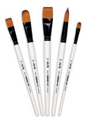 Contenu : 1 pinceau rond t. 20, 2 pinceaux plats t.16 et 24 et 2 pinceaux usés bombés t. 12 et 20. Prix par set.