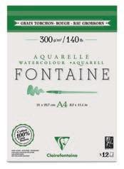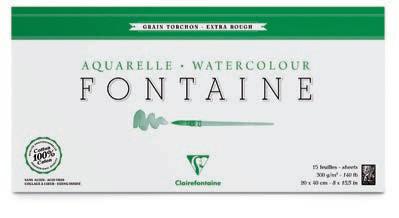 bloc grain torchon Fontaine - 300 g/m2 10 feuilles • Collé 1 côté • Papier aquarelle 100 % coton. Pur coton, répond aux attentes des aquarellistes les plus exigeants. Prix par bloc. format réf. €ttc -50%