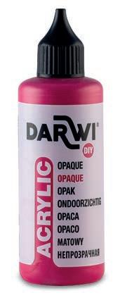 Peinture indélébile après le temps de séchage • Rincez votre matériel à l’eau. Ajoutez une touche phosphorescente à vos réalisations avec l’acrylique de haute qualité Darwi ! En combinaison avec vos peintures acryliques ou utilisée seule, la peinture phosphorescente Darwi couvre votre matériel pour un résultat impeccable et original ! Pour customiser des pièces en bois, plastique, plexiglas, papier, carton, aluminium… Toutes les peintures Darwi Acryl sont sans danger et peuvent être utilisées par des enfants. Prix par flacon.