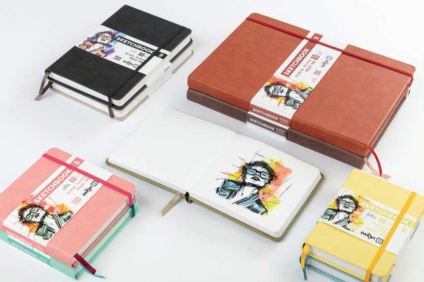 80 feuilles de papier blanc naturel • Grain très léger. Carnet à la couverture rigide au coins arrondis, contient un marque-page pour retrouver rapidement les croquis en cours. Sa fermeture élastique assure un maintien optimal et préserve les pages. idéal pour toutes les techniques sèches et les techniques légèrement humide (acrylique, gouache et aquarelle légère). Couverture rigide au touché “velouté” avec fermeture élastique et ruban marque-page contrasté par rapport à la couleur de couverture.