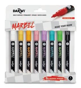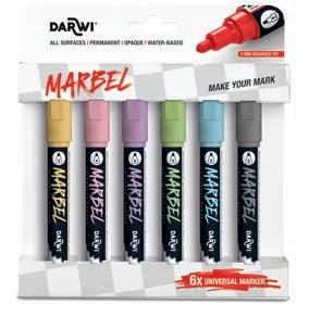 Riche de son savoir-faire de création de couleurs acryliques, la marque belge Darwi, lance son marqueur universel Marbel, avec le désir profond de permettre à chacun de laisser une trace belle et unique. Que ce soit pour esquisser un chefd’œuvre, ajouter une touche personnelle à un objet du quotidien, ou simplement explorer les nuances de la créativité sur des supports variés, Marbel est là pour donner vie aux idées les plus audacieuses. Crée, inspire et laisse ton empreinte créative ! Make your mark !