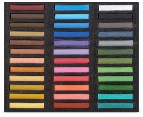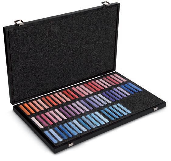 Longueur 70 mm, diamètre 12 mm. Pur pigment assemblé en bâtons, le pastel sec Blockx est tendre mais non friable, velouté et d’une grande opacité. Vous pouvez les utiliser sur tout support. Vivaces, lumineuses, fraîches, également diluables à l’eau et parfaitement solides à la lumière, elles vous sont garanties par 5 générations de recherches et d’expérience Blockx. 204 nuances au choix. Prix à l’unité. Veuillez compléter la réf. par le n° de couleur de votre choix. unité *cde min. réf. €ttc -30% M pastel 3 3-28532/… 4,15 2,99