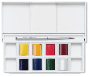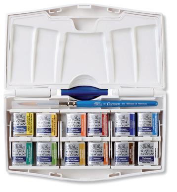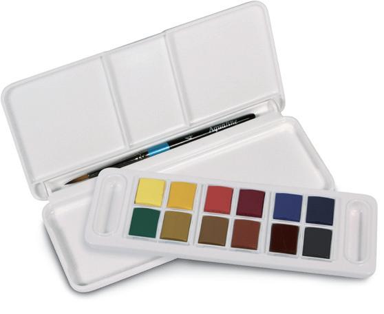 Inhoud : 12 of 24 aquarelnapjes Aquafine, 1 mini penseel Aquafine (m.4) en 1 uitneembaar palet.