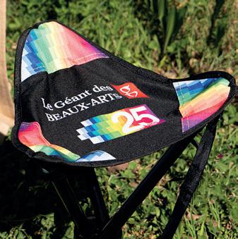 Bekleding zitvlak in 100 % polyester • Robuust met een maximaal toelaatbaar gewicht van 110 kg • Elastiekband om de geplooide driepoot samen te houden tijdens vervoer • Zithoogte 53 cm.