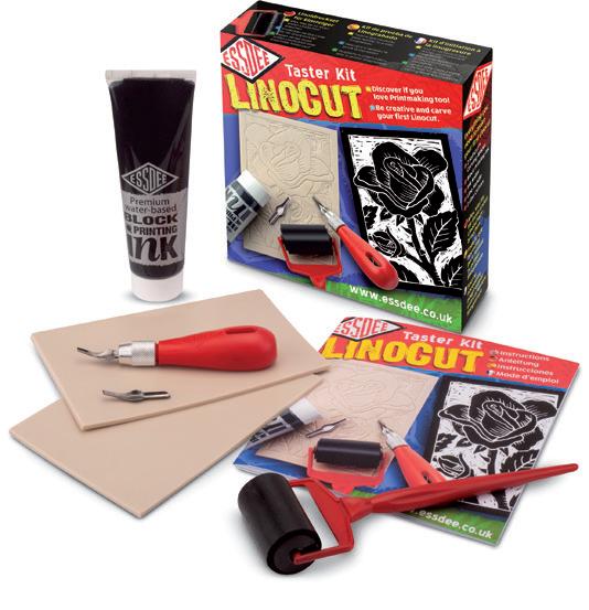 Inhoud : 2 platen linoleum SoftCut, linoleumgutsen, 1 tube van 100 ml inkt, inktrol 45 mm en handleiding.