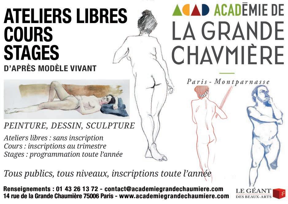 – Cours d’apprentissage ou de perfectionnement (peinture et dessin, modelage, modèle vivant, aquarelle)