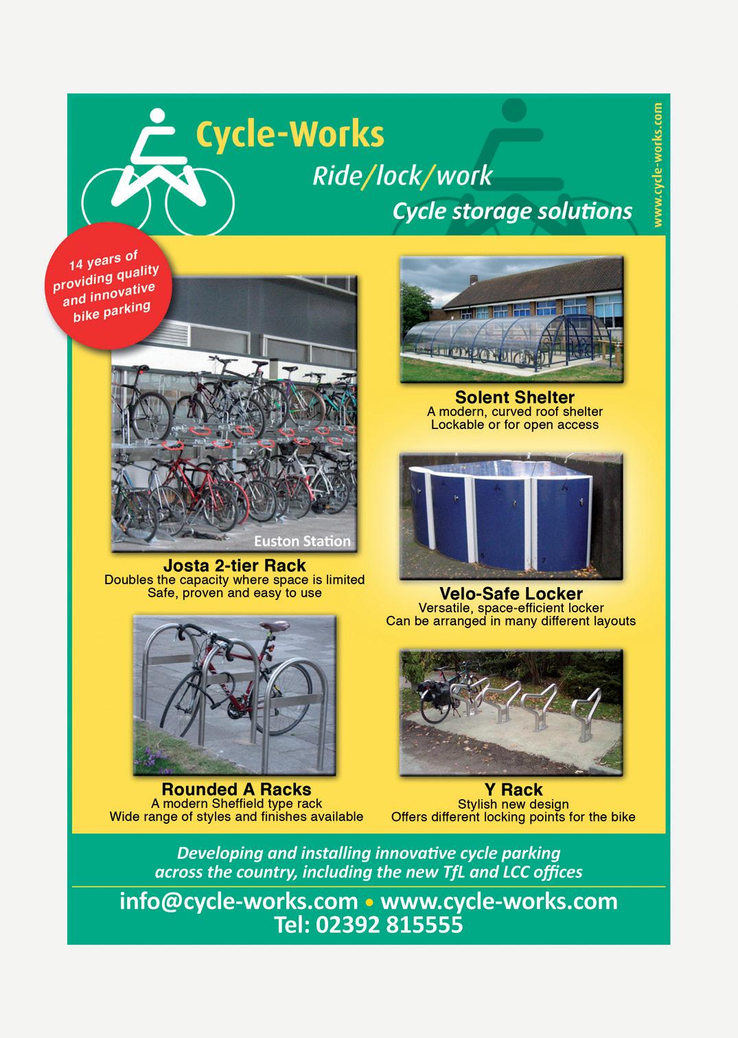 The thing is, lots of would-be cyclists are put off by the lack of cycle-friendly features in their workplaces. We’d like to urge you to make an investment in better facilities for ours – such as showers, lockers and cycle storage devices. (Cycle-Works, overleaf, can explain all the storage options to you – including cycle lockers, an efficient and cost-effective solution which many employers are using instead of traditional cycle sheds, and special two-tiered storage systems, as seen at Euston and Liverpool Street, which can be ideal if capacity is an issue.) Investment really is the right word. Studies show that cycling to work improves employee morale, health, productivity, recruitment and loyalty, and it reduces absenteeism. It also saves money through reduced costs for things like car parking, travelling expenses and congestion charges. And it improves the company brand by demonstrating a commitment to the local environment.
