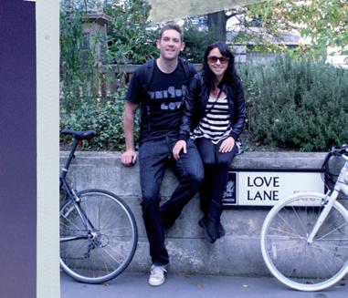 on quiet roads (mostly on dedicated cycle tracks) yet takes in some of the capital’s most romantic places, old and new – including the South Bank, the London Eye, Tate Modern, Angel Canal, the City, St Paul’s Cathedral, Shoreditch, the British Museum, Covent Garden and a certain Love Lane! Our circular route also passes Liverpool Street, Kings Cross, Euston and Waterloo, so you can take your bikes onto the train and then set off from one of these stations. The course of true love never ran smoother. We sent London couple Mike Toone and Dominique Flint on our romantic route. Here’s how they got on…