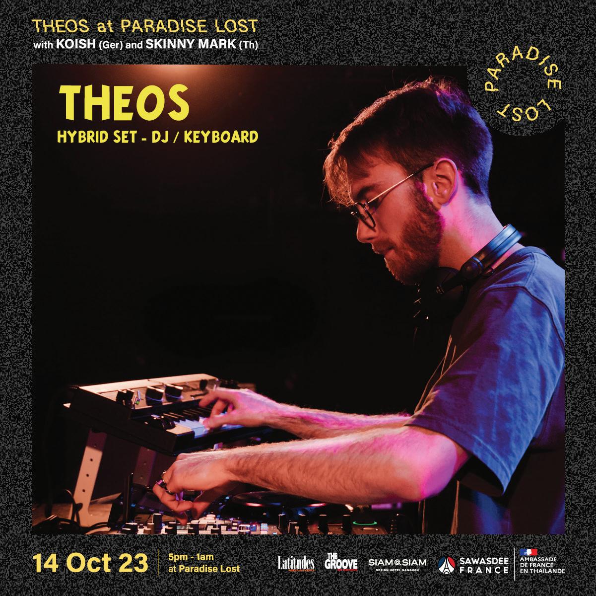 Theos fera sa première apparition asiatique le 14 octobre au Paradise Lost, au sommet de Bangkok, soutenu par deux des artistes les plus respectés de la scène de Big Mango : Koish, qui mettra l’ambiance au coucher du soleil avec un mix