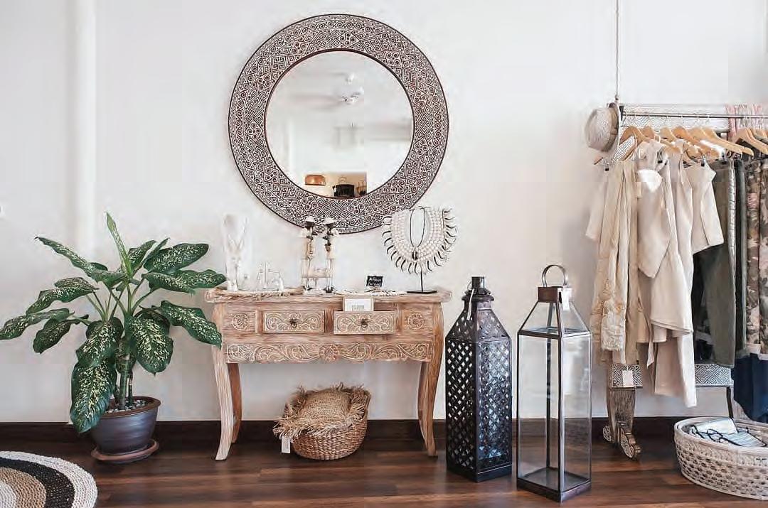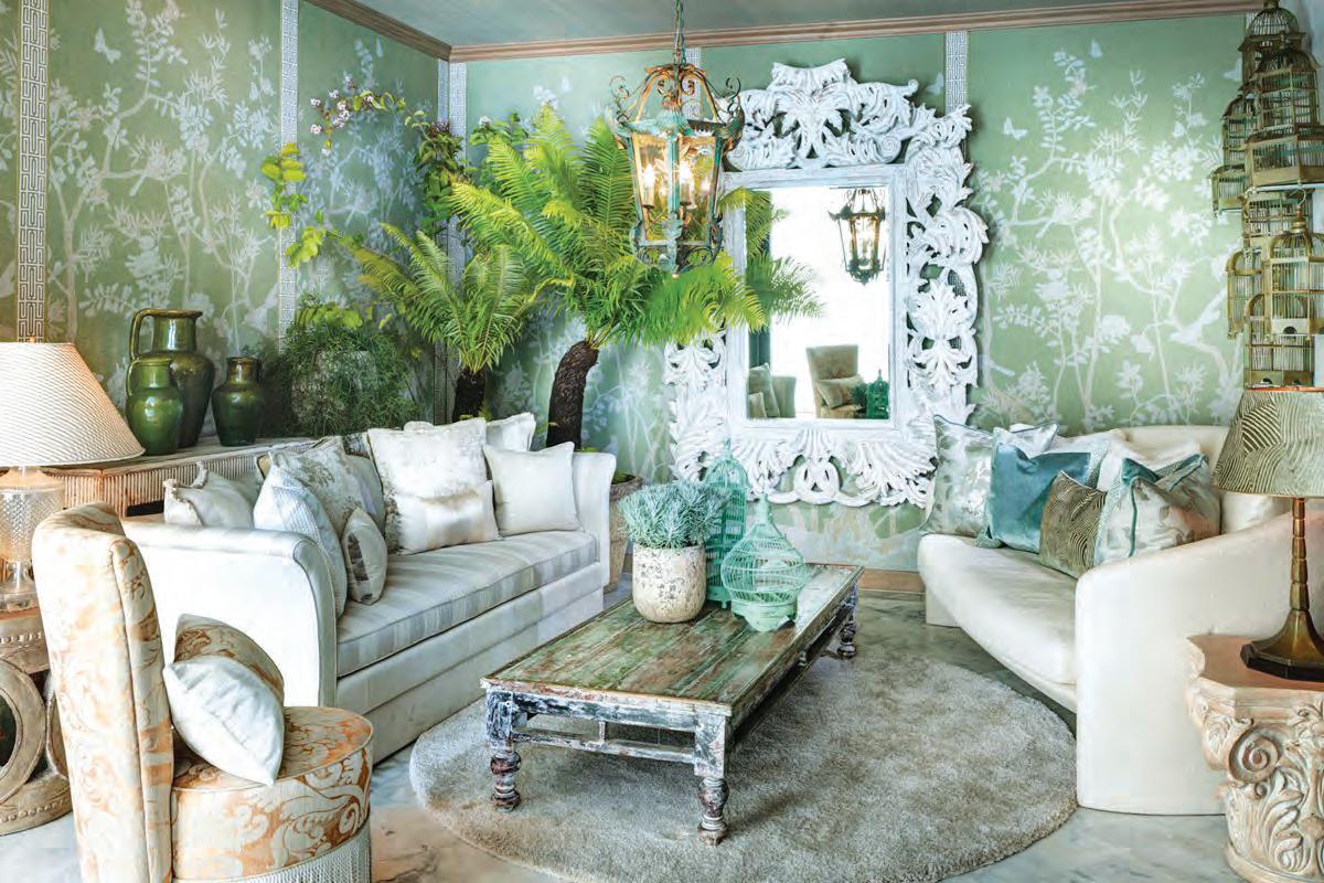 decorated in a European Shabby Chic style using recycled materials and a color palette selected from the jungle and sea.