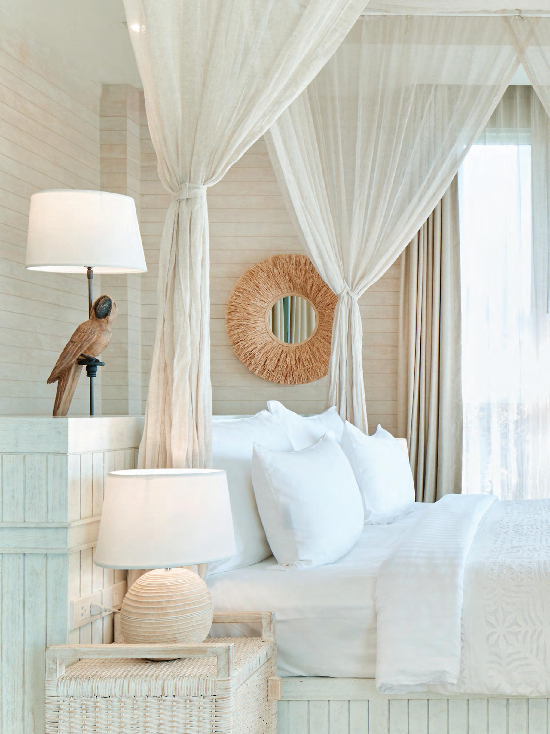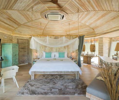 Built in a spirit of simplicity that suits perfectly the deserted island spirit, with weathered wood, soothing colors and a hint of