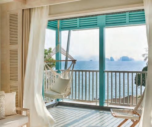 Perched on the hill and rocked by hornbill songs, the Studios have their own private Jacuzzi with mesmerizing views over the resort greenery, while the Plunge Pool Deluxe Studios and their breathtaking view of Phang Nga Bay feature a plunge pool and a romantic swing just for two on lovely private open-air living area (sala). Directly on the beach, the villas offer elegance and privacy with a private pool with Jacuzzi, garden, and an outdoor living area with a private bar.