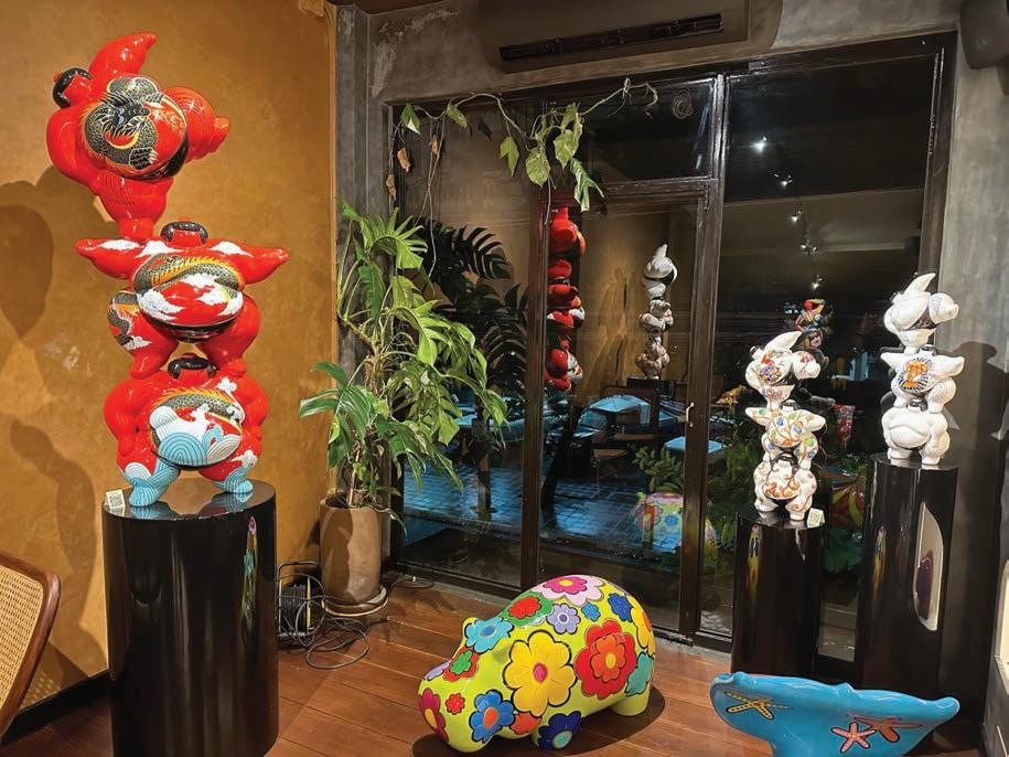 Just across the street is Galerie P. Tendercool, artisans renowned for their exquisite wooden tables and furniture. Belgian couple Peter Compernol and Stephanie Grusenmeyer were the first to open a gallery in the Creative District. “We opened the first gallery in 2006, where Speedy Grandma now stands. At the time, it was three abandoned shop houses that we converted before moving in 2011, soi 30,” explains Stephanie.