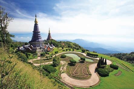 The Doi Inthanon National Park, located about 115km from Chiang Mai, is because of its altitude (2565m) a home for a wide variety of plants, birds, myriads of butterflies, black bears as well as different species of monkeys. The two royal pagodas known as Phra Mahathat Naphamethanidon and Phra Mahathat Naphaphonphumisiri, with their magnificent gardens and panoramic views, are a must, as is the cave of Tham Borichinda with its beautiful stalactites and stalagmites.