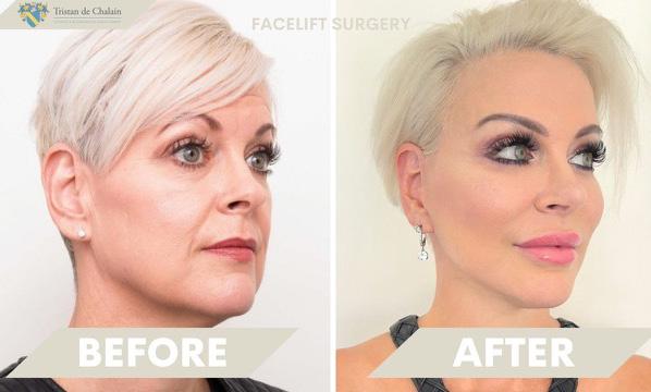 Dr Tristian de Chalain often combines a mid-face lift with his facelifts because no other technique has the ability to restore the cheek fullness and height as effectively. Also, this will shorten the aged, elongated lower eyelid and help lift the corners of the mouth.