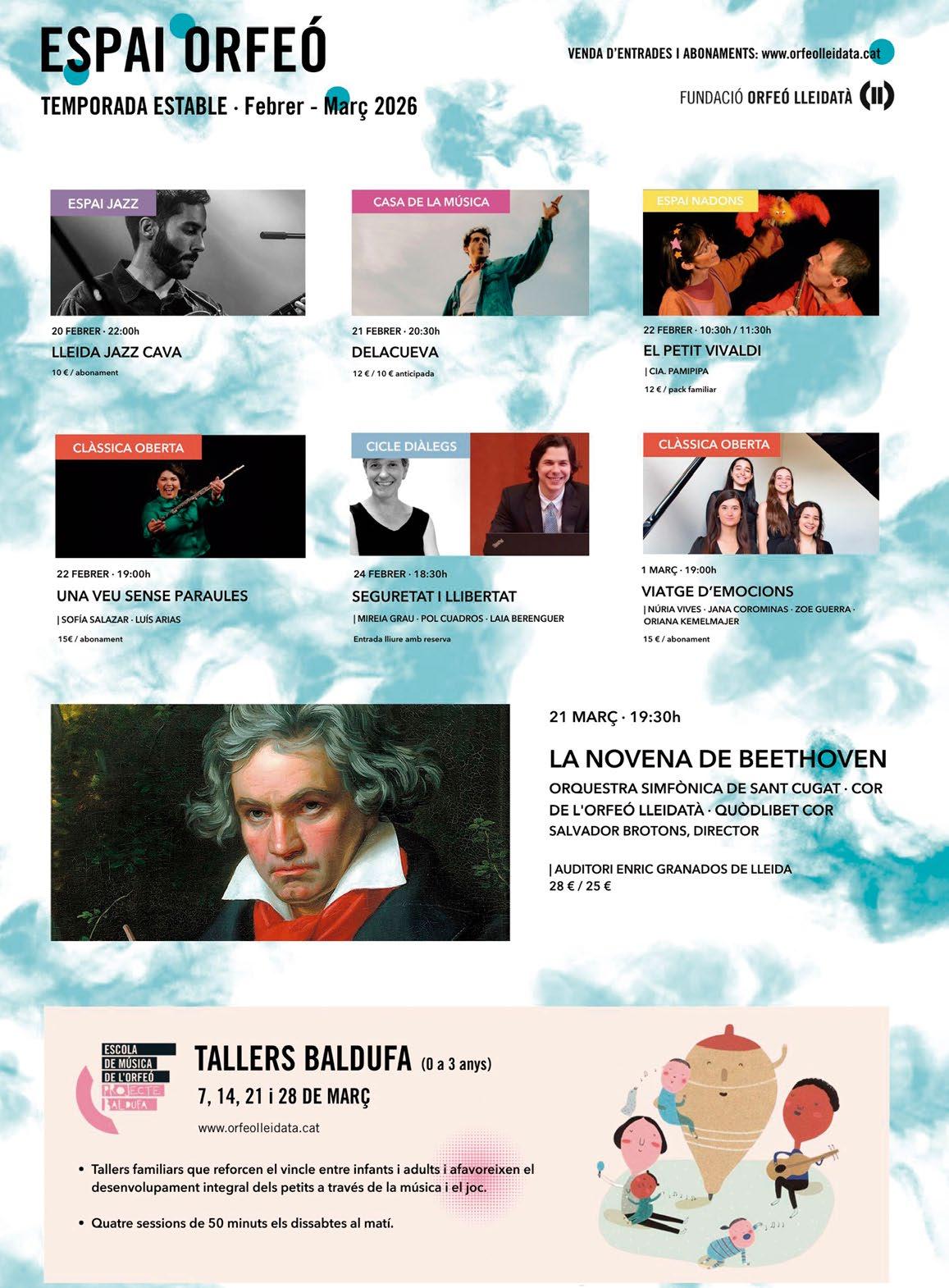 Febrer arriba carregat d’activitat cultural a Lleida. A banda de ser el mes de carnaval, el calendari cultural inclou cinema, música, teatre familiar, concerts simfònics i propostes escèniques de primer nivell a espais com el CaixaForum, l’Auditori Enric Granados i el Teatre de l’Escorxador.