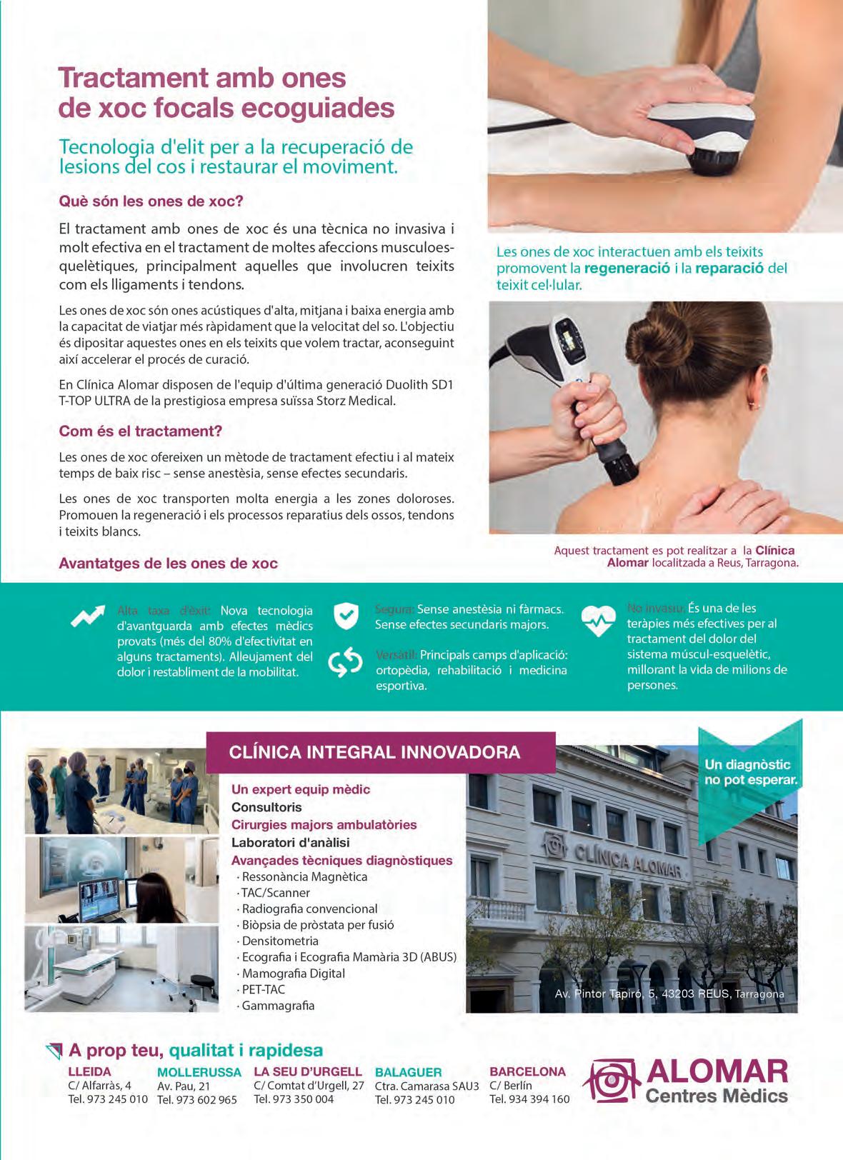Tel. 973 282 994 Col·laboradors: Informa’t al C/ Alcalde Pujol, 3 · Lleida LLOGUER DE CONSULTES Noves instal.lacions, ampli horari, ubicats a la zona alta de lleida i amb fàcil aparcament NO TANQUEM AL MIGDIA T’OFERIM L’ESPAI ADIENT, PER FER-HO REALITAT! Ets PROFESSIONAL de la salut? Vols tenir la teva consulta? Més de El teu centre de referència a Lleida