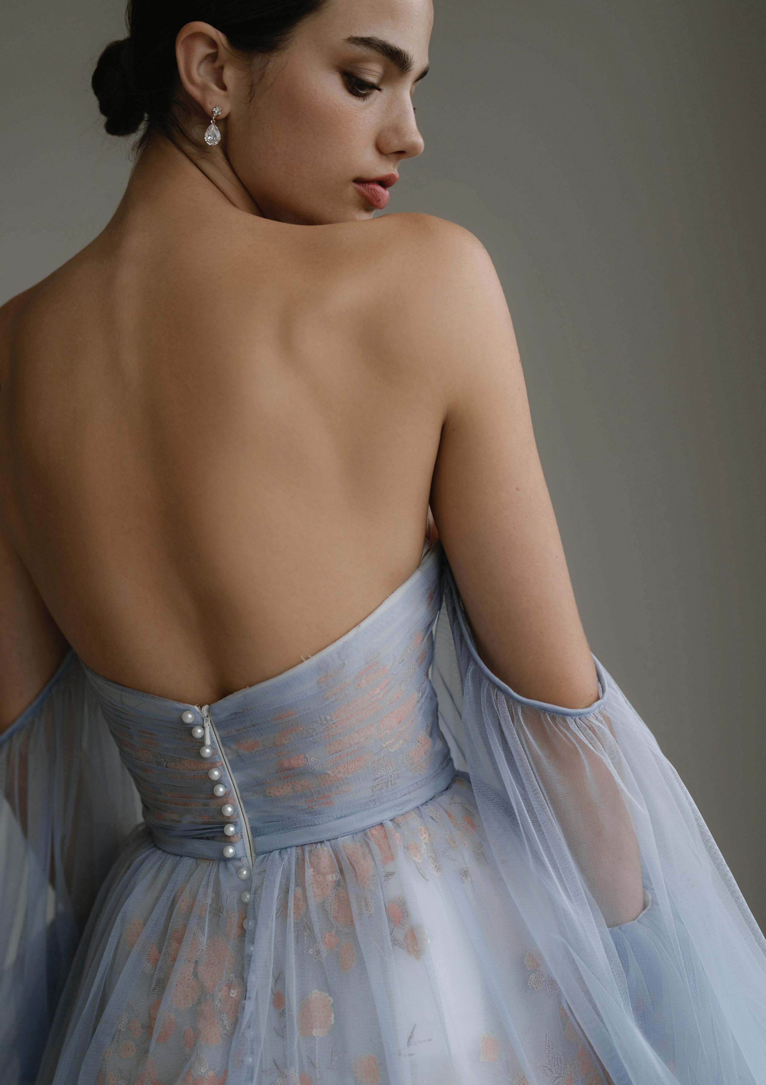 DRESS: Hera Couture’s Le Wild Rose dress in dusky blue