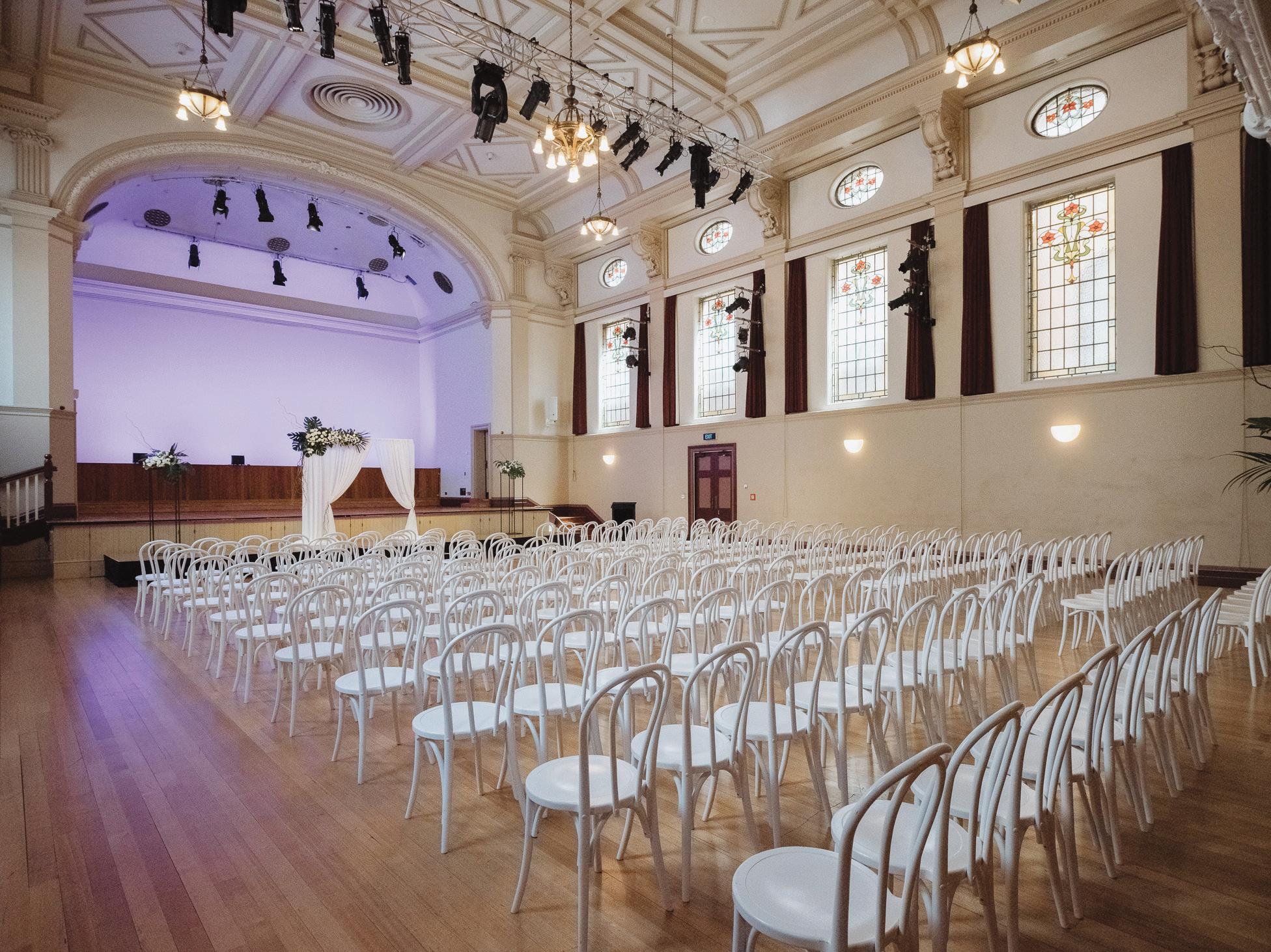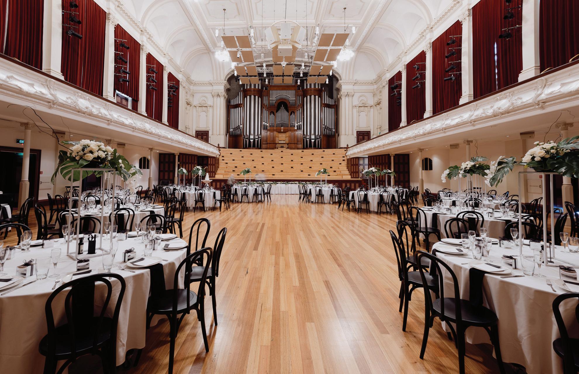 For smaller receptions or boutique weddings, The Tea House is Riccarton Park’s premium heritage venue. Set within its own private garden area, this beautifully restored Edwardian building showcases classic architectural features such as twin roof turrets, sweeping verandas, and a uniquely charming interior. It comfortably accommodates 40 to 100 guests at round tables, making it ideal for intimate celebrations. The adjacent Tea House Lawn is a romantic outdoor location for your ceremony, complete with manicured lawns, mature trees, and a tranquil water feature that adds to the magic of the moment.