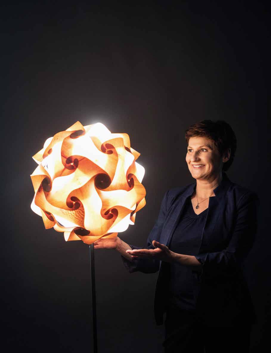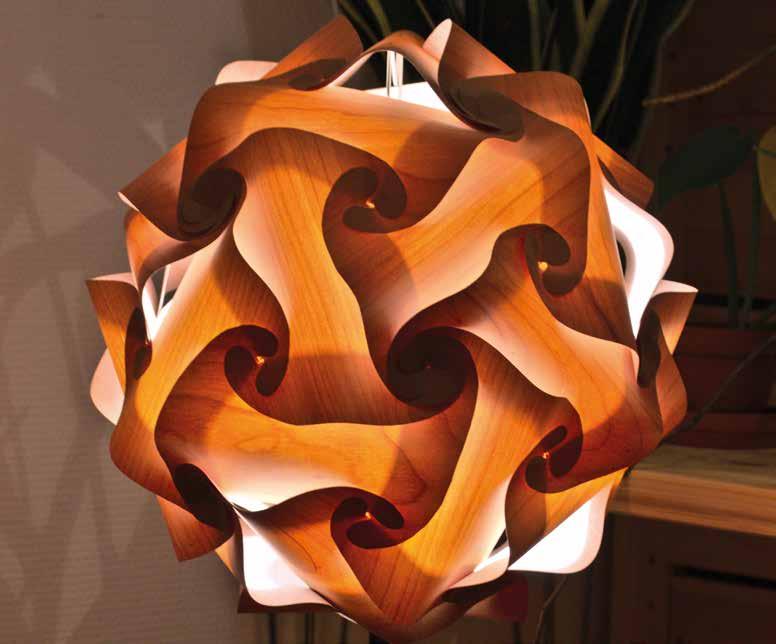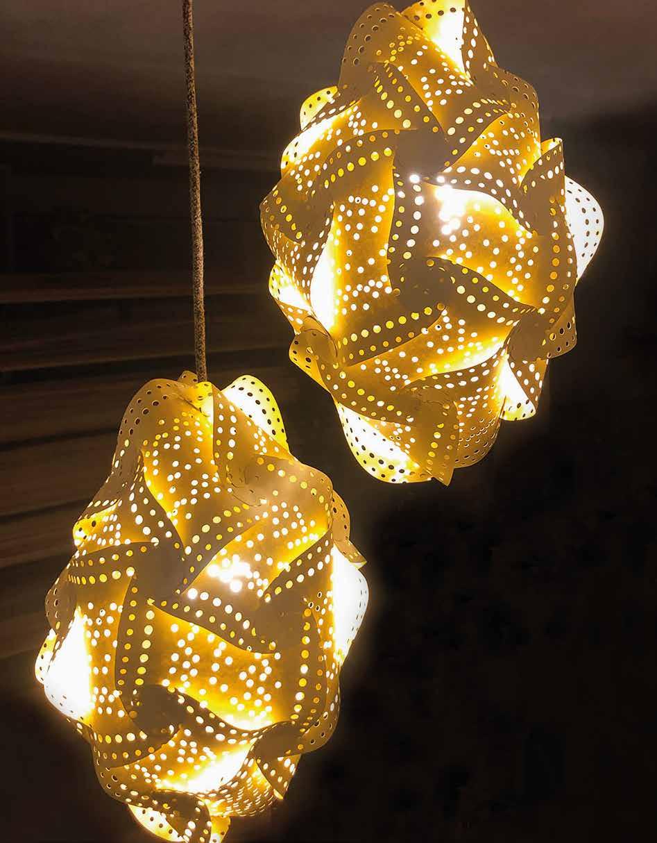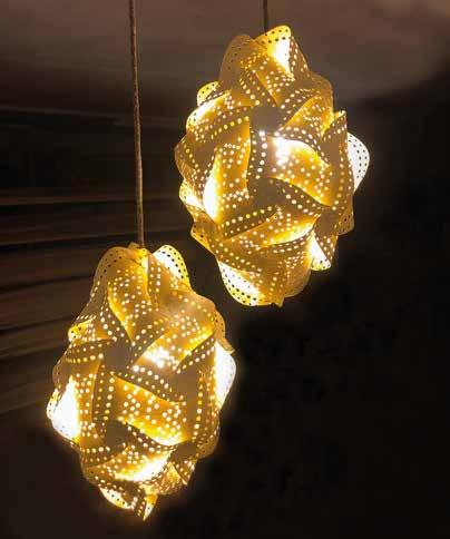 Aus Stickereilochkarten, Holzfurnier, Textilien oder Notenblättern entstehen handgefertigte leuchtende Unikate.