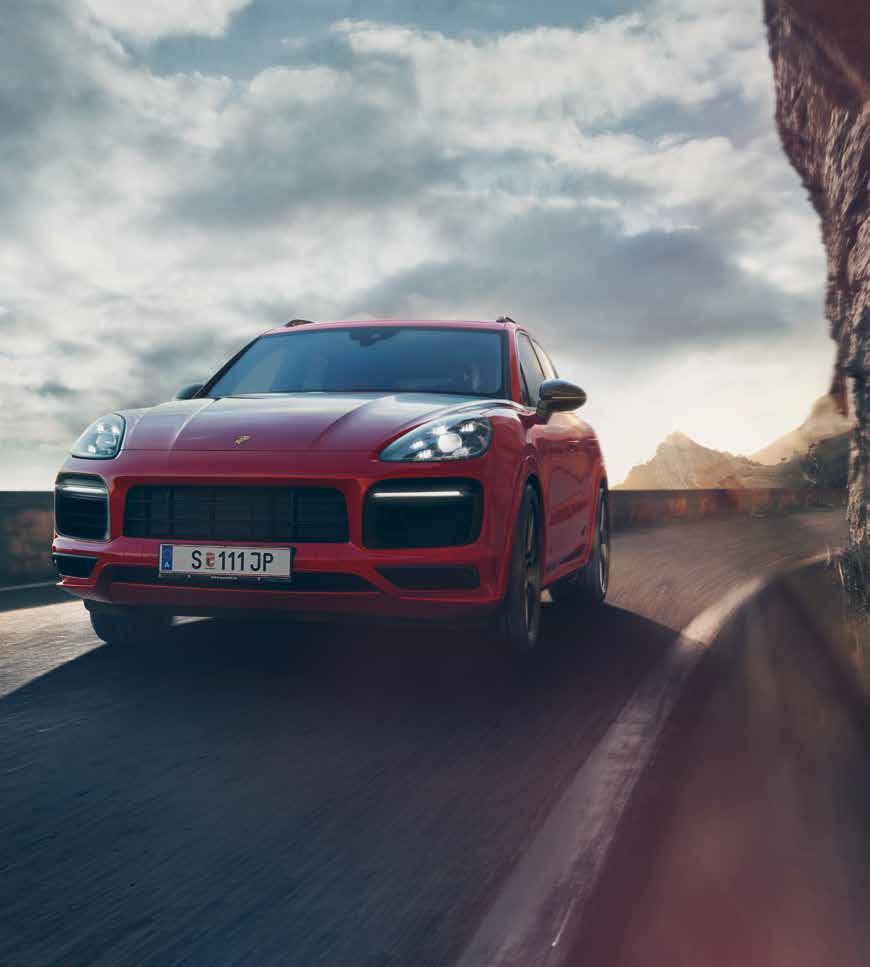 Cayenne GTS – Kra sto verbrauch kombiniert: 13,2 – 14,1 l/100 km; CO₂-Emissionen kombiniert: 299 – 319 g/km. Stand 03/2023. Die angegebenen Werte wurden nach dem vorgeschriebenen Messverfahren VO (EG) 715/2007 (in der gegenwärtig geltenden Fassung) im Rahmen der Typengenehmigung des Fahrzeugs auf Basis des neuen WLTP-Prüfverfahrens ermittelt.
