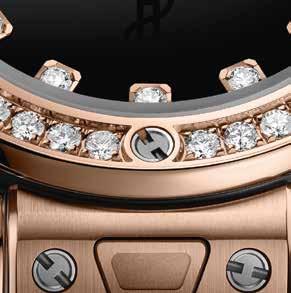 BIG BANG ONE CLICK Gehäuse aus 18K King Gold, besetzt mit Diamanten. Automatikwerk. Auswechselbares Armband mit patentiertem One-Click-System.