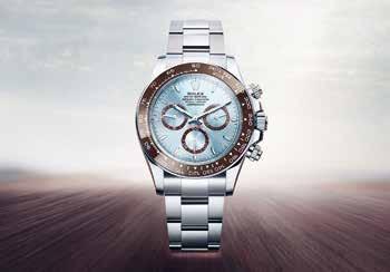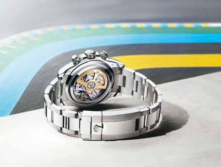 Eine Rolex für Autorennen 1963, als Rolex die erste Cosmograph vorstellte, war ein Chronograph mit automatischem Aufzug noch ein Zukunftstraum, weshalb die Modelle aus dieser Ära bis 1988 allesamt von Hand aufgezogen werden mussten. Beim Design hingegen schrieb die Marke Geschichte: Die drei Hilfszifferblätter für kleine Sekunde, gestoppte Minuten und Stunden hoben sich farblich vom übrigen Zifferblatt ab, indem sie stets in dessen Kontrastfarbe gehalten waren. Bei weißem Zifferblatt waren sie schwarz, bei schwarzem Zifferblatt weiß. Der sogenannte Panda- und Reverse-Panda-Look war geboren, lange bevor jemand auf die Idee kam, ihn so zu nennen. Doch die Farbgebung war nicht nur eine Frage des Designs, vielmehr garantierte sie eine klare farbliche Trennung der beiden Funktionen der Uhr: der Anzeige der Uhrzeit und derjenigen der gestoppten Zeit. Um das Zifferblatt nicht zu überladen, versetzten die Ingenieure von Rolex die Tachymeterskala auf die Lünette, die das gewölbte Glas umschloss. Mit dieser Skala lässt sich die Durchschnittsgeschwindigkeit eines Fahrzeugs messen. Entweder sitzt man dazu selbst im Fahrzeug oder man wohnt einem Rennen als Zuschauer bei.