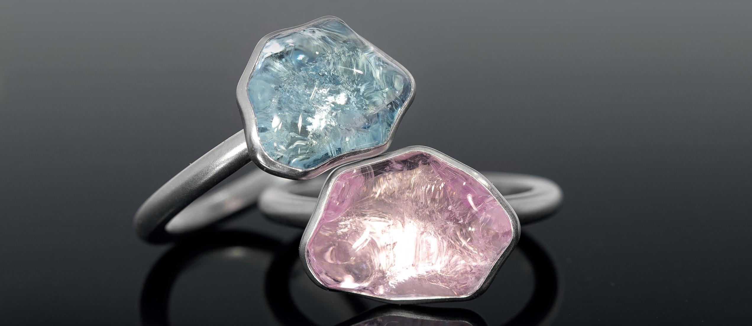 Um die Einzigartigkeit der Edelsteine zu betonen, war es Julius Norz beim Entwerfen dieser Kollektion besonders wichtig, auf ihren organischen Schliff einzugehen. Indem die Steine das Design beeinflussen, wird jedes Schmuckstück zu einem unverwechselbaren Unikat.