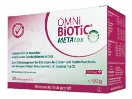 Lebensmittel für besondere medizinische Zwecke (bilanzierte Diät) www.omni-biotic.com Zucker- und Fettstoffwechsel im Griff OMNi-BiOTiC® METAtox: Speziell für übergewichtige Erwachsene (z. B. Diabetes Typ 2) entwickelt. €4,–Gutschein für OMNi-BiOTiC® METAtox* * € 4,– Gutschein gültig für OMNi-BiOTiC® METAtox (30 Stk.) bis 30. November 2023. Keine Barablöse möglich, pro Person und Packung nur 1 Gutschein einlösbar. Hinweis für Apotheken: Eingelöste Gutscheine bitte Ihrem AllergoSan-Außendienst-Mitarbeiter übergeben. Art.-Nr. 81441