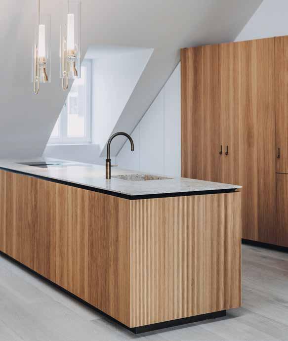 Beim Umbau im Stadthaus K galt es Wohn-, Küchenund Essbereich zu optimieren und den Raum den individuellen Bedürfnissen anzupassen. Das Schaffen eines funktionalen, aber dennoch harmonischen Gesamtbildes durch den Einfall von Licht und einer Kombination aus hellem Holz und Stein stand bei der Konzipierung und Planung im Fokus.
