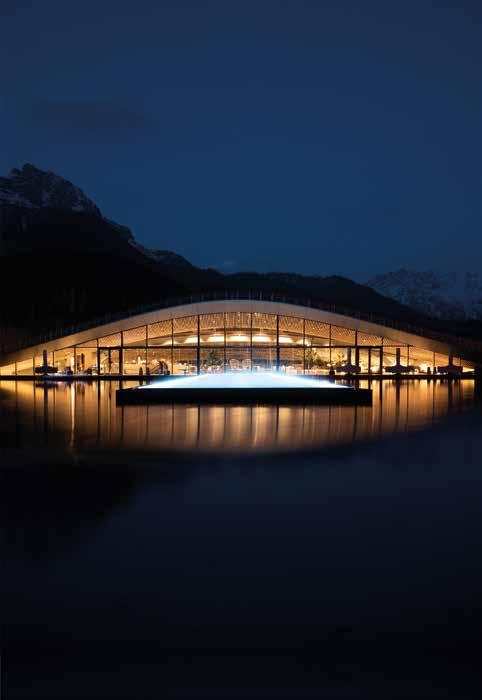 as Hotel Krallerhof – ein » 5-Sterne-Kraftort« in Leogang – zeigt mit »ATMOSPHERE by Krallerhof « seinen Gästen einmal mehr, was ein außergewöhnliches Urlaubsangebot sein kann. Mit einem noch nie da gewesenen, ikonischen Spa des internationalen Star-Architekten Hadi Teherani bietet der Krallerhof eine neue sphärische Welt der Regeneration, Entspannung und Erneuerung. Die organische Architektur fügt sich ruhig und respektvoll in die Landschaft ein. Ein puristisch reduziertes Bauwerk aus Glas, Holz und Sichtbeton, das Erholungsuchenden Raum und Möglichkeiten ganzheitlicher Entspannung schenkt. Alles ist im Fluss – auch der Übergang zwischen draußen und drinnen: Herbst wie Winter schenkt die Architektur den Menschen für den Blick in die Natur einen besonderen Rahmen. «