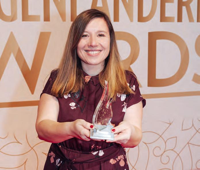 „Die Auszeichnung war für mich ein großer Moment, er kommt gleich nach dem Maturaball und meiner Hochzeit“, lacht die Demenzdolmetscherin Marina Moyses. Sie arbeitet viel mit älteren Menschen zusammen; dass ihr Fanclub sich mit so viel Engagement am OnlineVoting beteiligt, hätte sie nicht zu träumen gewagt. Am meisten freut sie sich darüber, dass ihr Herzensthema durch den Award viel Aufmerksamkeit bekommt: Sie engagiert sich für einen anderen Blick auf Demenz, „mit Gedächtnis und Koordinationstraining lässt sich auch präventiv sehr viel machen“. Marina Moyses ist praktisch in ganz Österreich unterwegs, arbeitet mit Feingefühl und Schmäh in Gruppen und in Einzelgesprächen im Praxisraum in Purbach.