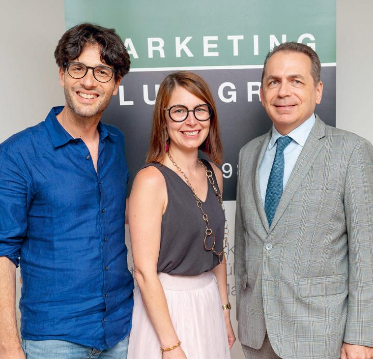 1. Robert Seeger, der Vortragende, mit der Moderatorin Carina Hödl (niceshops) und Thomas Foscht (Präsident des Marketing Club Graz)